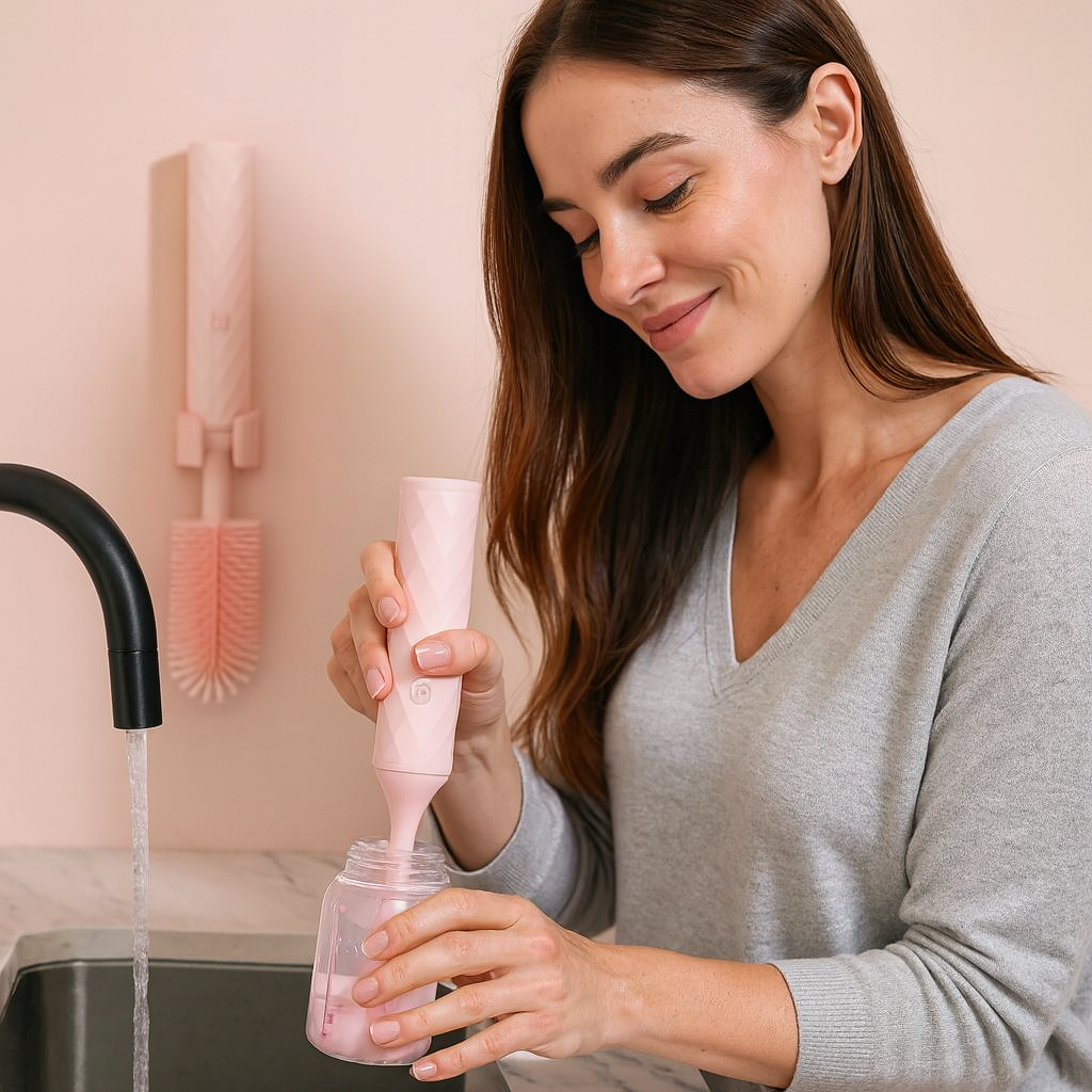 Als frischgebackene Eltern ist Zeit ein kostbares Gut. Diese elektrische Flaschenbürste erledigt das lästige Schrubben in Sekunden – hygienisch, gründlich und sanft zu allen Materialien.