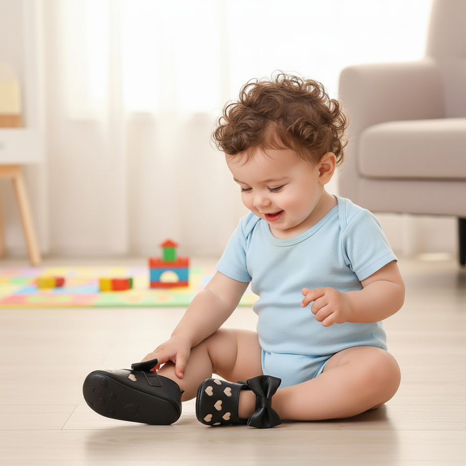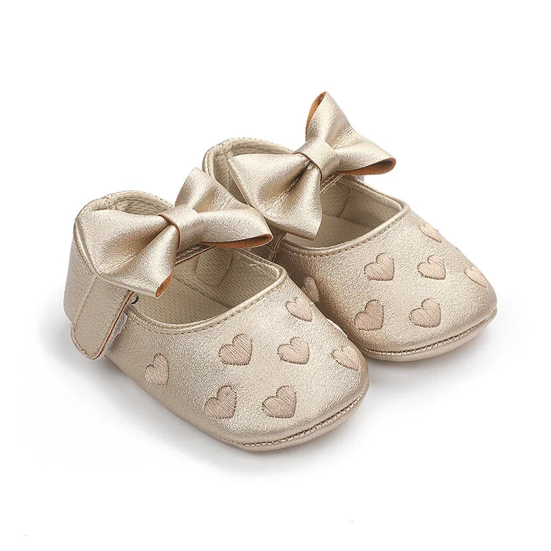 Diese Baby-Schuhe bieten deinem Kind sicheren Halt, während es seine ersten Schritte wagt. Das weiche Material schützt empfindliche Füße, während das süße Design mit Herz und Schleife einfach zum Verlieben ist. Perfekt für Alltag, Fotoshootings oder besondere Anlässe.