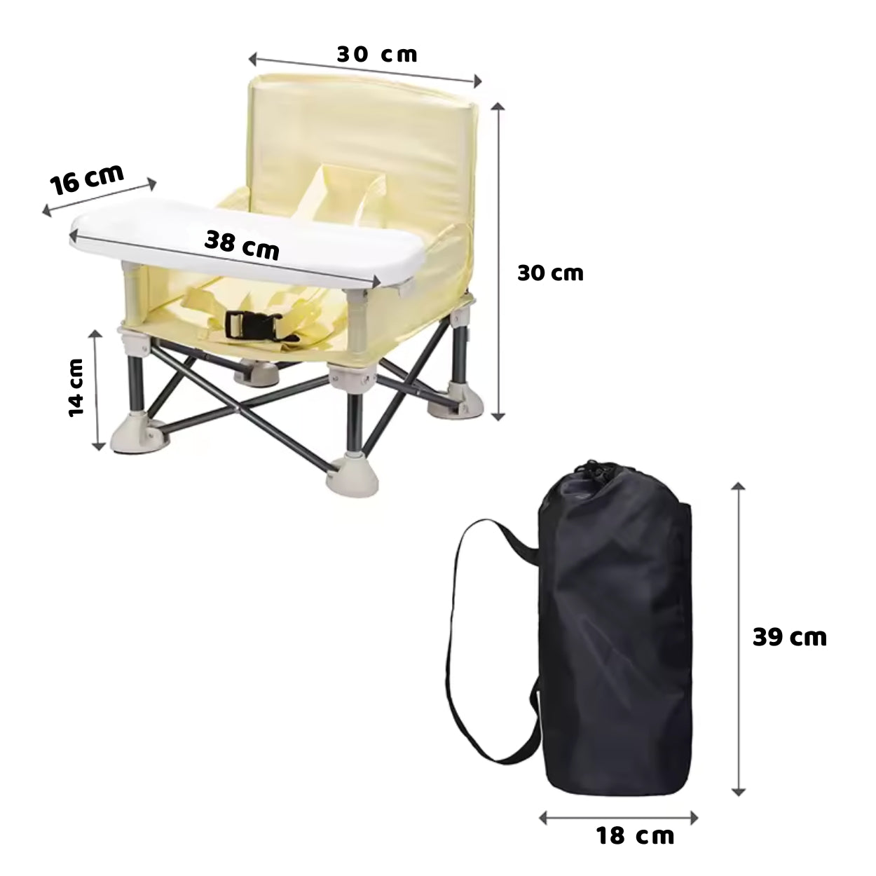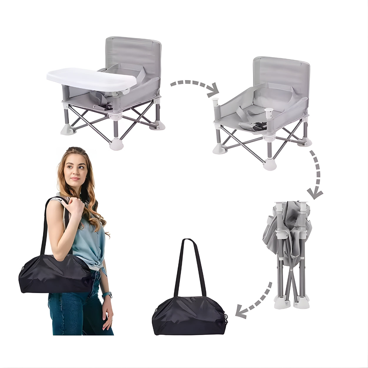 Dieser multifunktionale Baby-Hochstuhl löst das Problem unterwegs: Er ist faltbar, sicher, leicht und hat ein doppeltes Tablett. Ob zu Hause, im Urlaub oder beim Camping – dein Baby sitzt geschützt, kann essen oder spielen und du hast Ruhe & Sicherheit in jeder Situation.