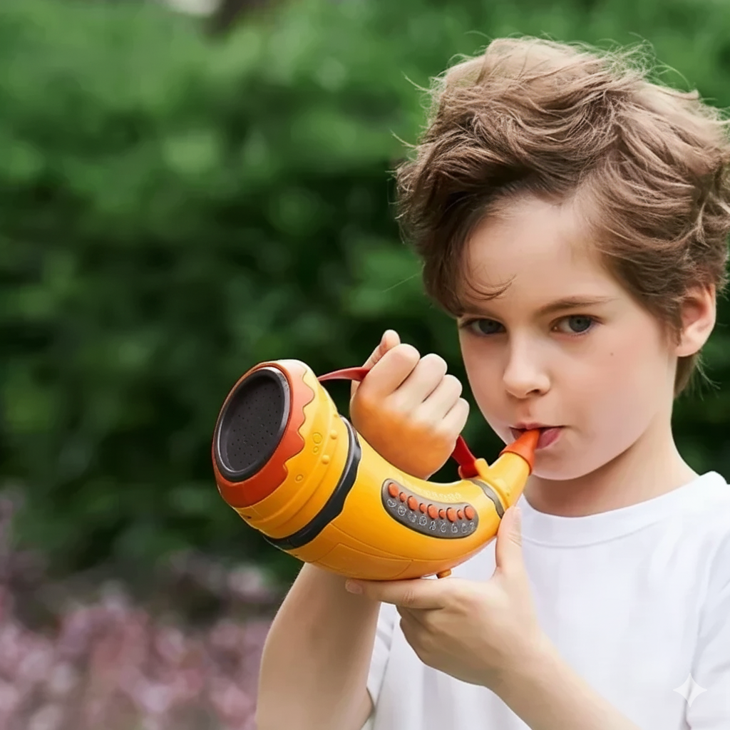 Kinder entdecken spielerisch ihre Lungenkraft! Das Horn zeigt über Lichtstufen den Atemfortschritt & belohnt mit Jubel. Lernen, Spaß & Bewegung vereint!