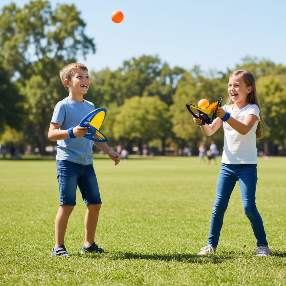 iele Kinder verbringen zu viel Zeit vor Bildschirmen. Das Rallye-Ball-Spiel bringt Bewegung, Lachen und Interaktion zurück in den Alltag. Mit elastischen Schlägern und weichen Bällen ist es sicher, fördert Fitness, Reaktion und Teamgeist – perfekt für drinnen und draußen!