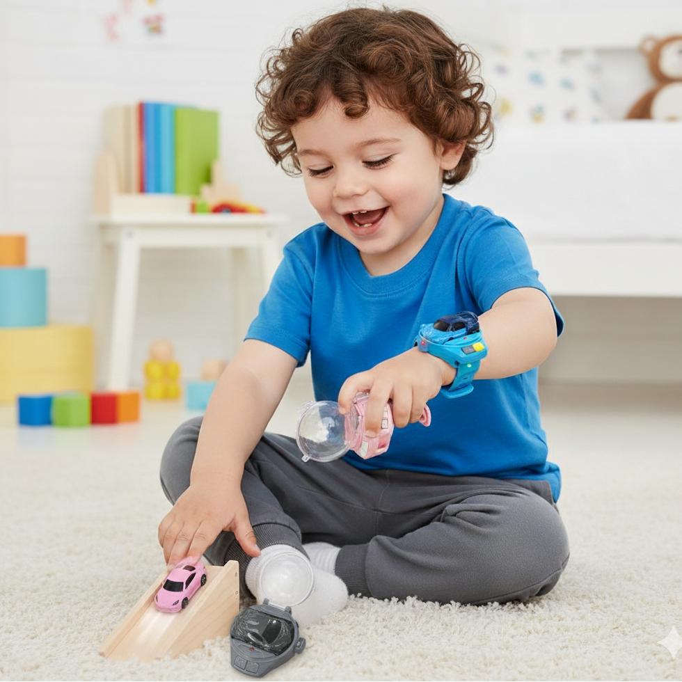 Mit dem 2.4G Mini Watch Auto können Kinder ihr Auto direkt über die Uhr steuern. Ein faszinierendes Erlebnis, das Reaktion, Motorik und Kreativität fördert. Robust, wiederaufladbar und bereit für jedes Abenteuer – egal ob im Wohnzimmer oder draußen!