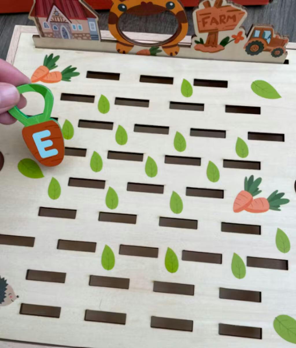 Viele Kinder verlieren schnell das Interesse an trockenen Lernmethoden. Mit diesem Montessori-Spielzeug wird Lernen zu einem spannenden Spielabenteuer! Durch das Ziehen der Karotten und das Entdecken von Buchstaben trainiert dein Kind Motorik, Konzentration und Sprachverständnis – und hat dabei jede Menge Spaß!