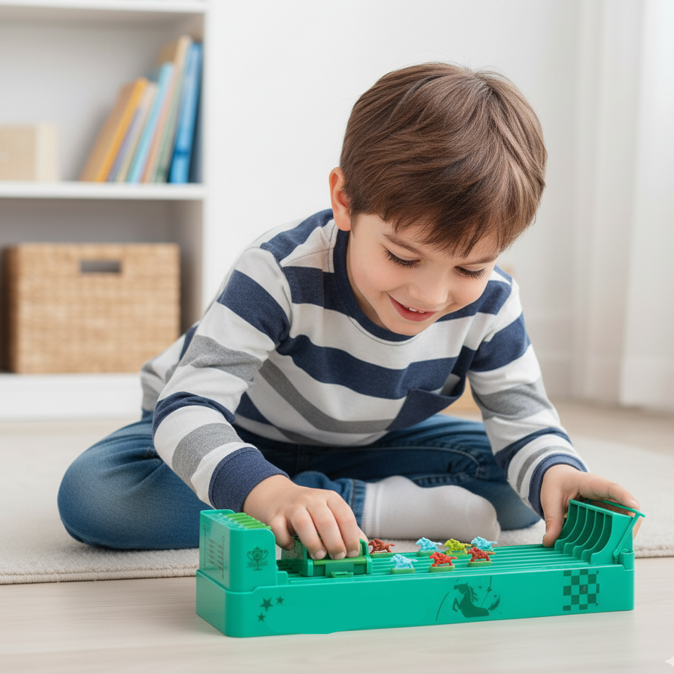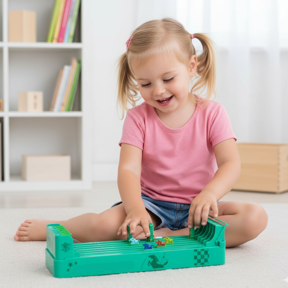 Sorge für Stimmung und Adrenalin auf deinem Spieleabend! Dieses spannende Pferderennspiel begeistert Groß und Klein gleichermaßen – realistische Pferdebewegungen, einfache Handhabung und garantierte Lacher. Perfekt für Geburtstage, Partys und gemütliche Familienabende.
