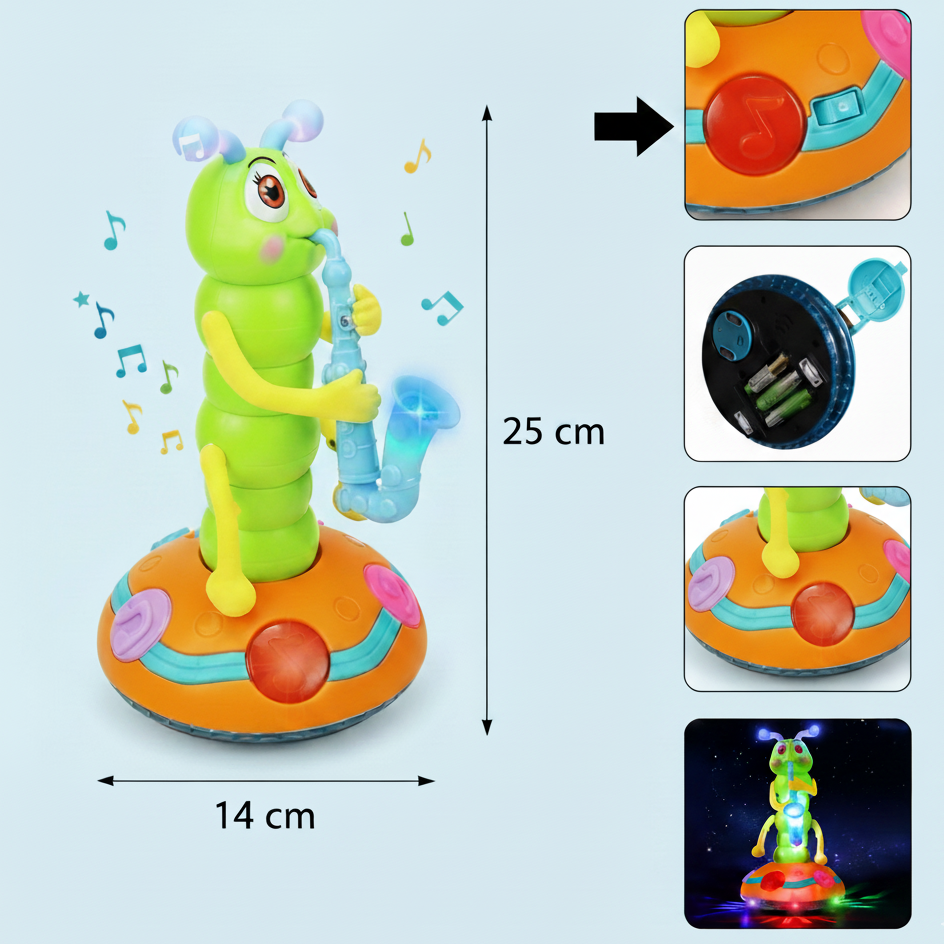 Kinder lieben Musik und Bewegung – unsere musikalische Raupe vereint beides. Durch Lichtshow, Wackelbewegung und tolle Songs wird dein Kind nicht nur unterhalten, sondern auch in seinen Sinneswahrnehmungen gefördert. Einfach anschalten und der Spaß beginnt!